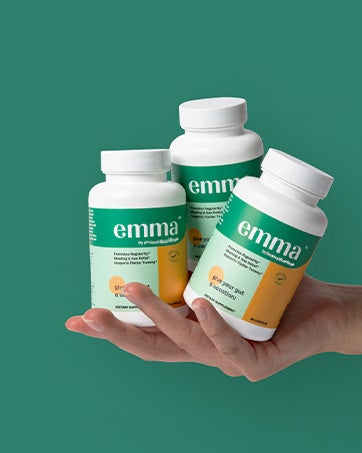 Emma helps reduce methane gas at the source. It works in 3 different ways to normalize bathroom habits, typically within a few weeks of taking it to help clear out stuck poop and bring back those perfect poops, daily.